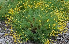 Planta aromática de crescimento lento com folhagem perene e folhas simples de forma linear. Flores amarelo. Fruto do tipo aquénio.