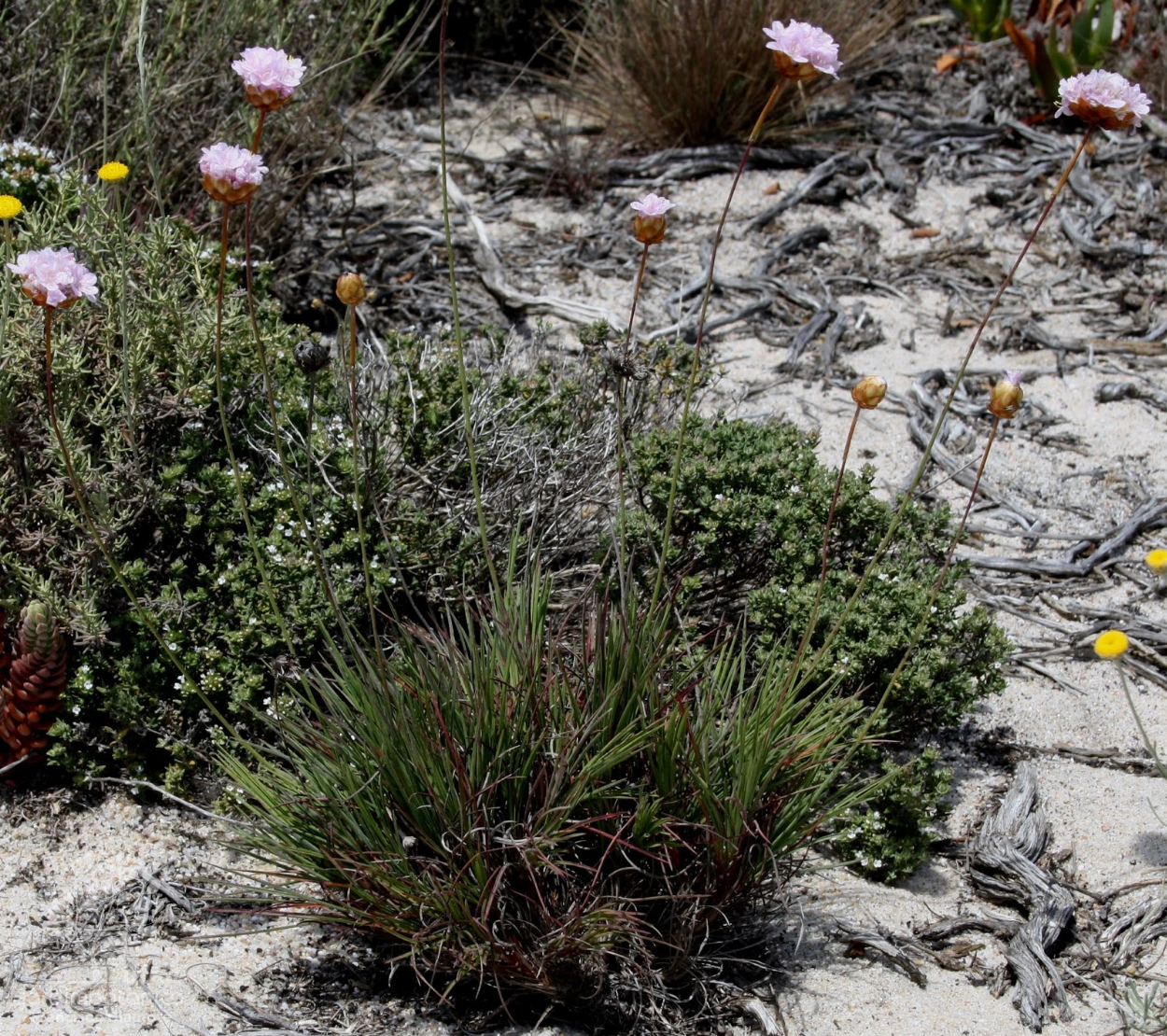 Herbácea de crescimento lento com folhagem perene e folhas simples basals de forma linear fina. Flores rosa. Fruto do tipo utrículo.