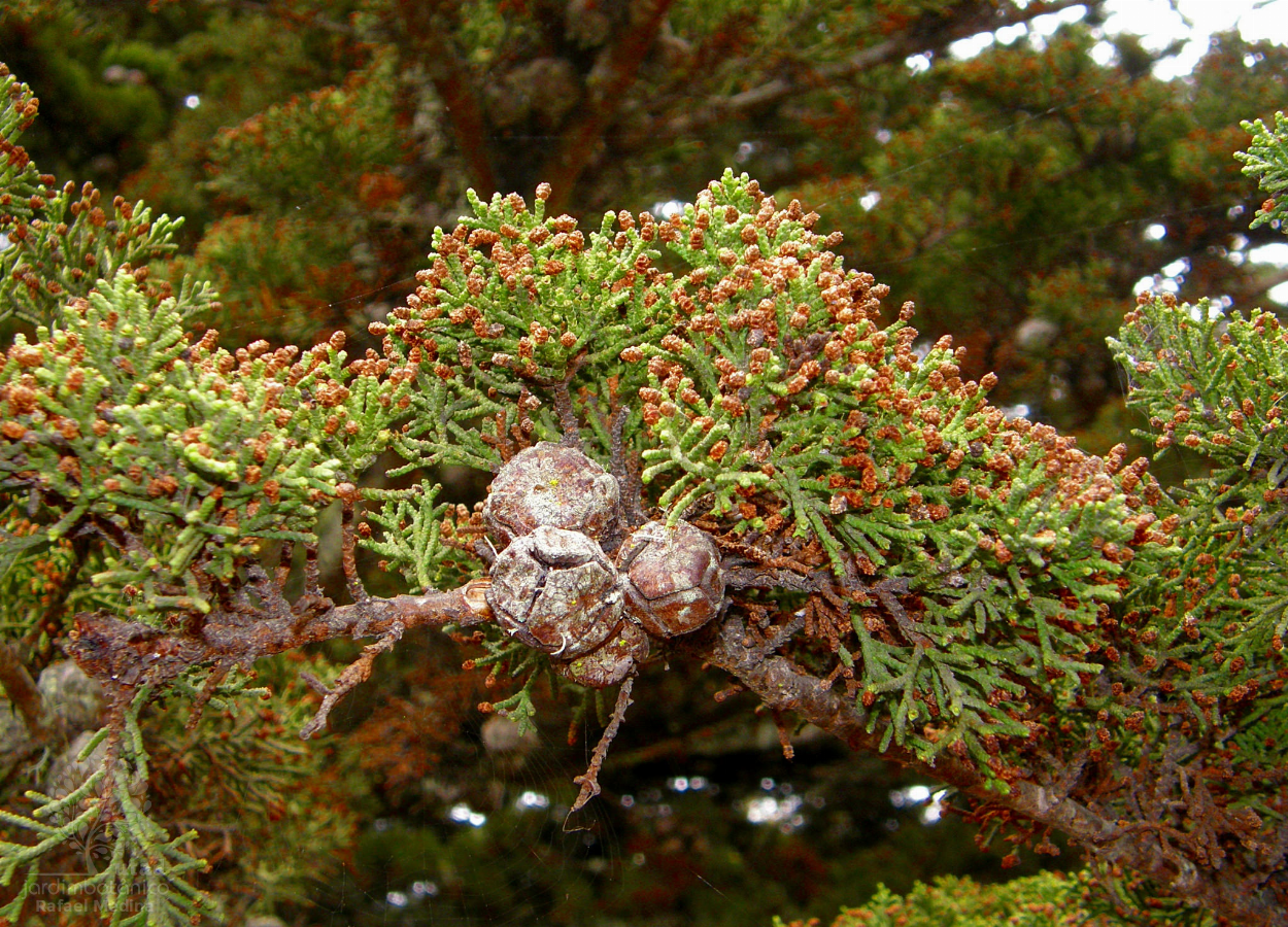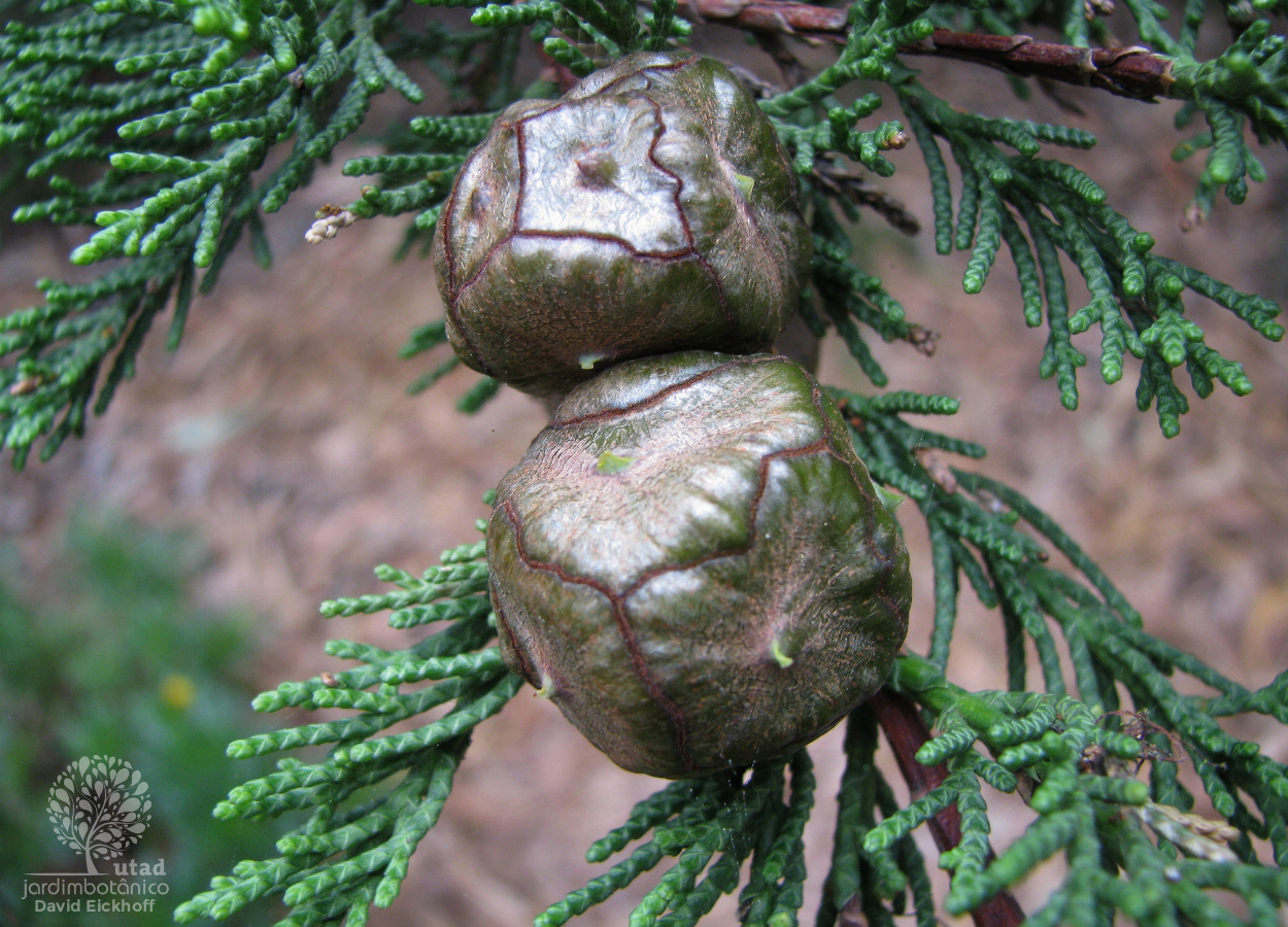 Árvore de crescimento rápido com folhagem perene e folhas escamiformes de forma escamas arredondadas. Flores amarelo. Fruto do tipo cone globoso.