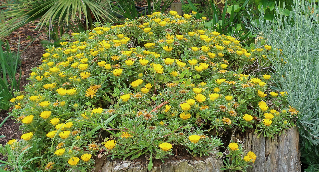Herbácea de crescimento moderado com folhagem perene e folhas simples de forma espatulada carnuda. Flores amarelo-dourado. Fruto do tipo aquénio.