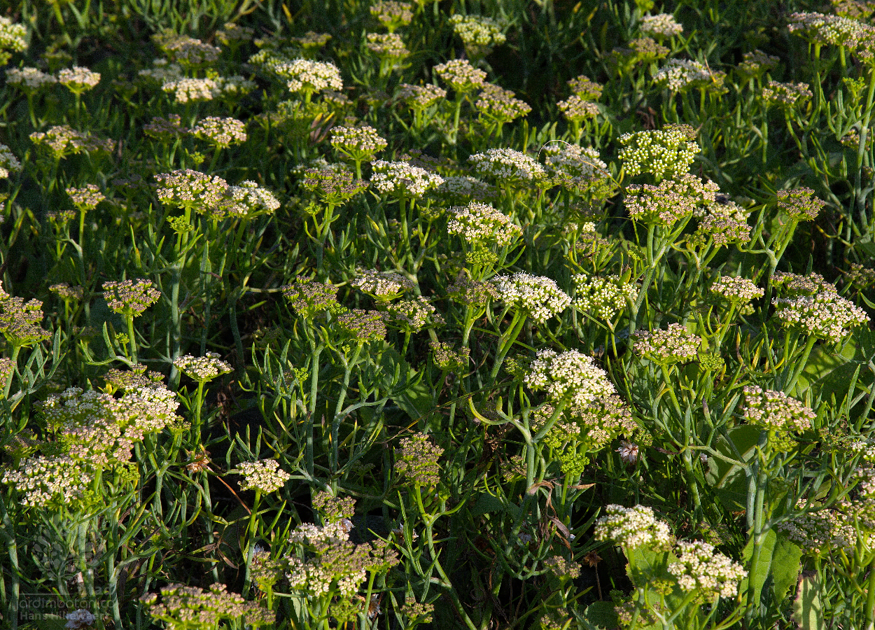 Herbácea de crescimento moderado com folhagem perene e folhas composta tripinadas de forma segmentos carnudos. Flores amarelo-esverdeado. Fruto do tipo esquizocarpo.